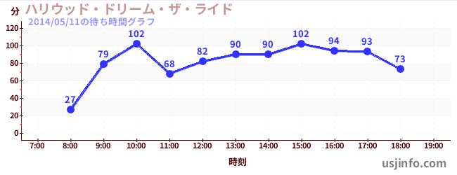 • ハリウッド・ドリーム・ザ・ライド$B$N(B2014年05月11日の待ち時間