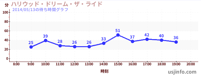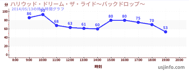 • ハリウッド・ドリーム・ザ・ライド〜バックドロップ〜$B$N(B2014年05月13日の待ち時間