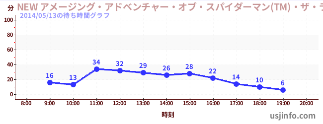 • NEW アメージング・アドベンチャー・オブ・スパイダーマン(TM)・ザ・ライド 4K3D$B$N(B2014年05月13日の待ち時間