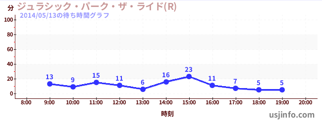 • ジュラシック・パーク・ザ・ライド(R)$B$N(B2014年05月13日の待ち時間