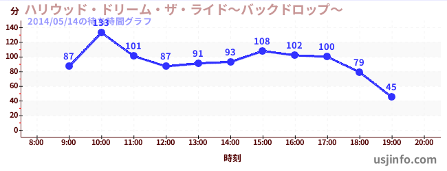 • ハリウッド・ドリーム・ザ・ライド〜バックドロップ〜$B$N(B2014年05月14日の待ち時間
