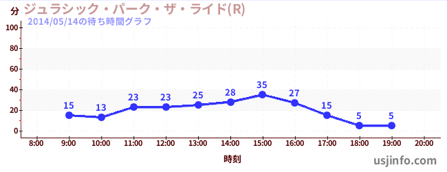 • ジュラシック・パーク・ザ・ライド(R)$B$N(B2014年05月14日の待ち時間