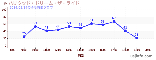 • ハリウッド・ドリーム・ザ・ライド$B$N(B2014年05月14日の待ち時間
