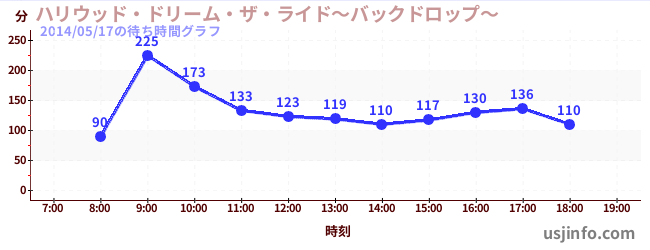 • ハリウッド・ドリーム・ザ・ライド〜バックドロップ〜$B$N(B2014年05月17日の待ち時間
