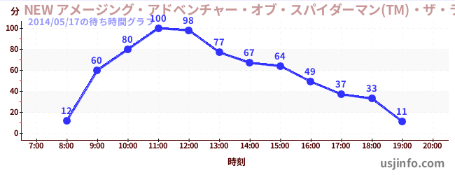 • NEW アメージング・アドベンチャー・オブ・スパイダーマン(TM)・ザ・ライド 4K3D$B$N(B2014年05月17日の待ち時間