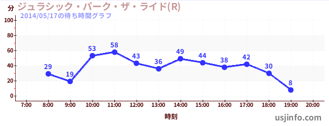 • ジュラシック・パーク・ザ・ライド(R)$B$N(B2014年05月17日の待ち時間