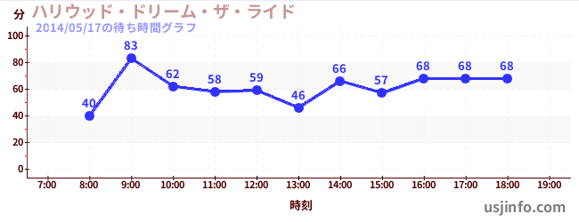 • ハリウッド・ドリーム・ザ・ライド$B$N(B2014年05月17日の待ち時間