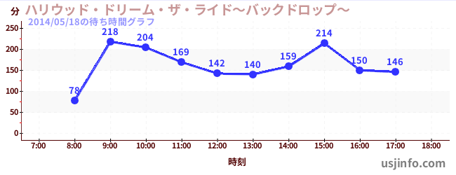• ハリウッド・ドリーム・ザ・ライド〜バックドロップ〜$B$N(B2014年05月18日の待ち時間