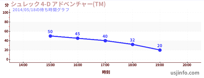 • シュレック 4-D アドベンチャー(TM)$B$N(B2014年05月18日の待ち時間