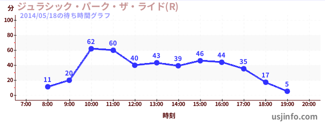 • ジュラシック・パーク・ザ・ライド(R)$B$N(B2014年05月18日の待ち時間