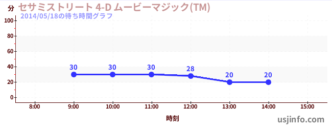• セサミストリート 4-D ムービーマジック(TM)$B$N(B2014年05月18日の待ち時間