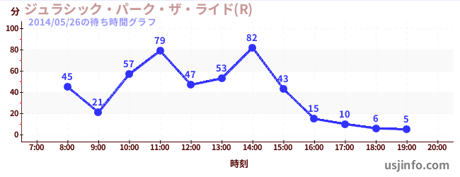 • ジュラシック・パーク・ザ・ライド(R)$B$N(B2014年05月26日の待ち時間
