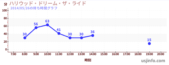 • ハリウッド・ドリーム・ザ・ライド〜バックドロップ〜$B$N(B2014年05月26日の待ち時間