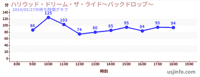 • ハリウッド・ドリーム・ザ・ライド〜バックドロップ〜$B$N(B2014年05月27日の待ち時間