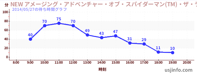 • NEW アメージング・アドベンチャー・オブ・スパイダーマン(TM)・ザ・ライド 4K3D$B$N(B2014年05月27日の待ち時間