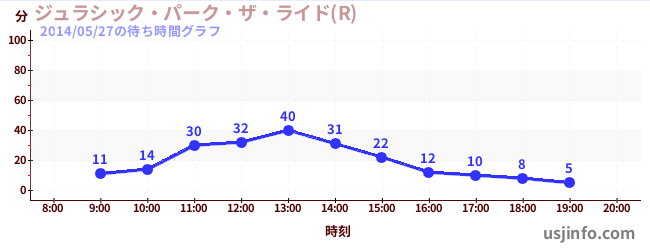 • ジュラシック・パーク・ザ・ライド(R)$B$N(B2014年05月27日の待ち時間