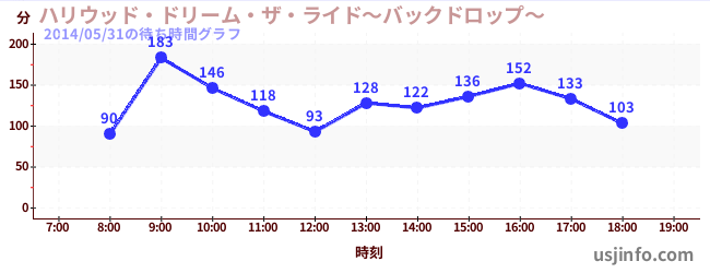 • ハリウッド・ドリーム・ザ・ライド〜バックドロップ〜$B$N(B2014年05月31日の待ち時間