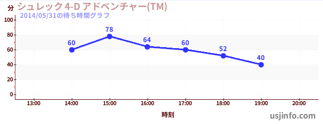 • シュレック 4-D アドベンチャー(TM)$B$N(B2014年05月31日の待ち時間