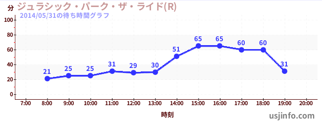 • ジュラシック・パーク・ザ・ライド(R)$B$N(B2014年05月31日の待ち時間