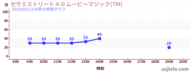 • セサミストリート 4-D ムービーマジック(TM)$B$N(B2014年05月31日の待ち時間