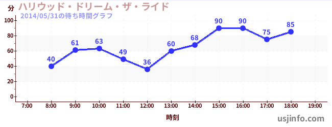 • ハリウッド・ドリーム・ザ・ライド$B$N(B2014年05月31日の待ち時間