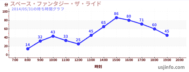 • スペース・ファンタジー・ザ・ライド$B$N(B2014年05月31日の待ち時間