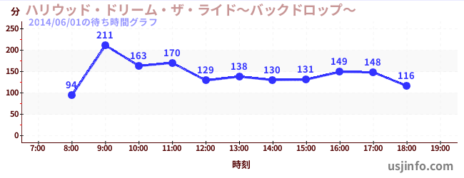 • ハリウッド・ドリーム・ザ・ライド〜バックドロップ〜$B$N(B2014年06月01日の待ち時間