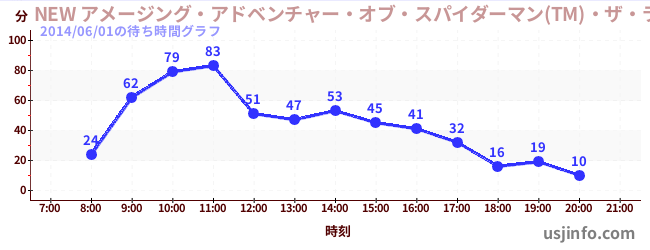 • NEW アメージング・アドベンチャー・オブ・スパイダーマン(TM)・ザ・ライド 4K3D$B$N(B2014年06月01日の待ち時間