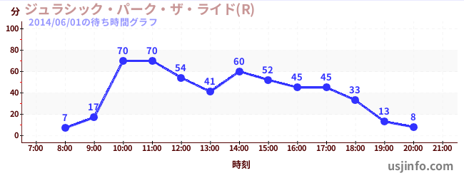 • ジュラシック・パーク・ザ・ライド(R)$B$N(B2014年06月01日の待ち時間