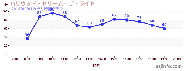 • ハリウッド・ドリーム・ザ・ライド$B$N(B2014年06月01日の待ち時間