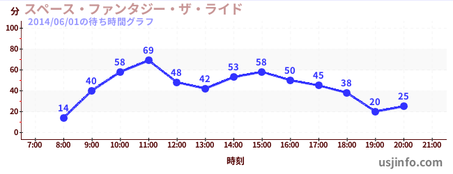 • スペース・ファンタジー・ザ・ライド$B$N(B2014年06月01日の待ち時間