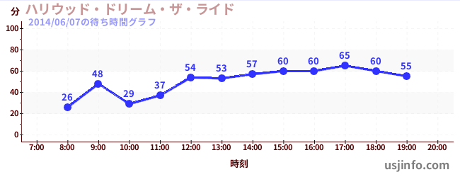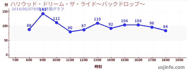 • ハリウッド・ドリーム・ザ・ライド〜バックドロップ〜$B$N(B2014年06月07日の待ち時間