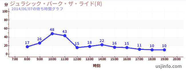 • ジュラシック・パーク・ザ・ライド(R)$B$N(B2014年06月07日の待ち時間