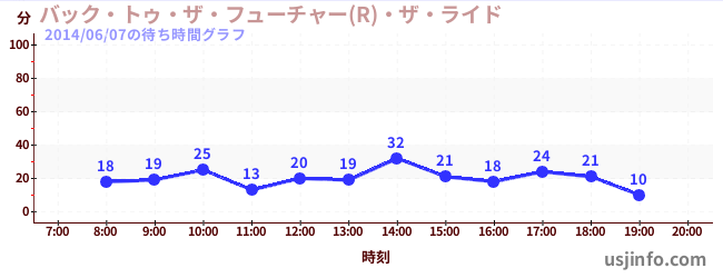 • バック・トゥ・ザ・フューチャー(R)・ザ・ライド$B$N(B2014年06月07日の待ち時間