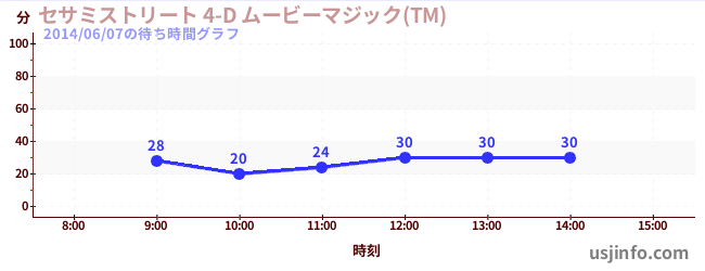 • セサミストリート 4-D ムービーマジック(TM)$B$N(B2014年06月07日の待ち時間