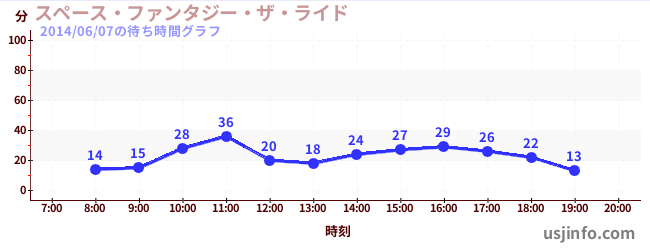 • スペース・ファンタジー・ザ・ライド$B$N(B2014年06月07日の待ち時間