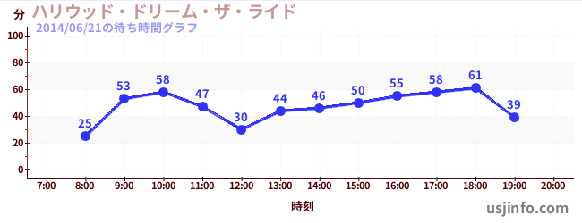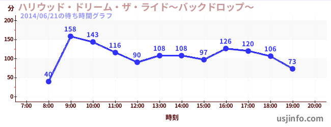• ハリウッド・ドリーム・ザ・ライド〜バックドロップ〜$B$N(B2014年06月21日の待ち時間