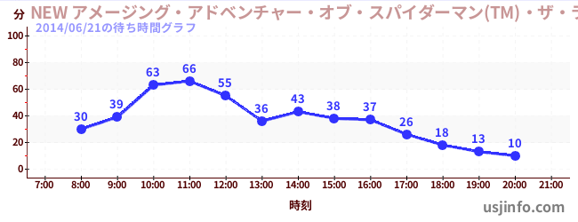 • NEW アメージング・アドベンチャー・オブ・スパイダーマン(TM)・ザ・ライド 4K3D$B$N(B2014年06月21日の待ち時間