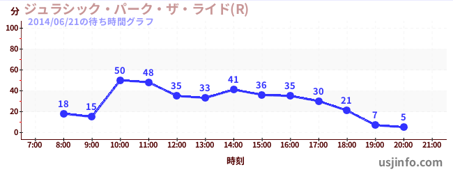 • ジュラシック・パーク・ザ・ライド(R)$B$N(B2014年06月21日の待ち時間