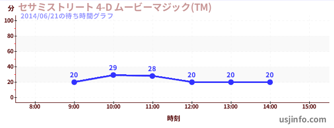 • セサミストリート 4-D ムービーマジック(TM)$B$N(B2014年06月21日の待ち時間