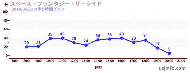 • スペース・ファンタジー・ザ・ライド$B$N(B2014年06月21日の待ち時間