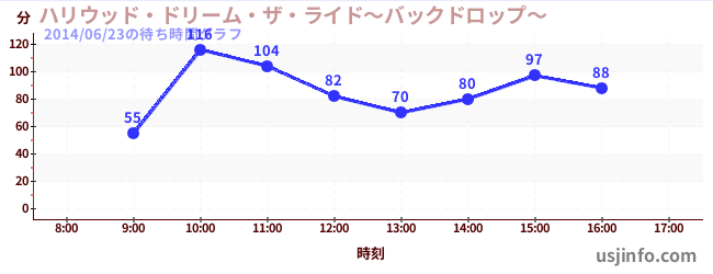 • ハリウッド・ドリーム・ザ・ライド〜バックドロップ〜$B$N(B2014年06月23日の待ち時間