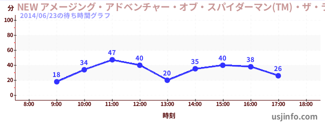 • NEW アメージング・アドベンチャー・オブ・スパイダーマン(TM)・ザ・ライド 4K3D$B$N(B2014年06月23日の待ち時間