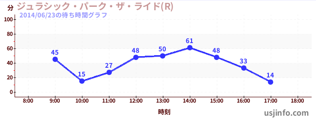 • ジュラシック・パーク・ザ・ライド(R)$B$N(B2014年06月23日の待ち時間