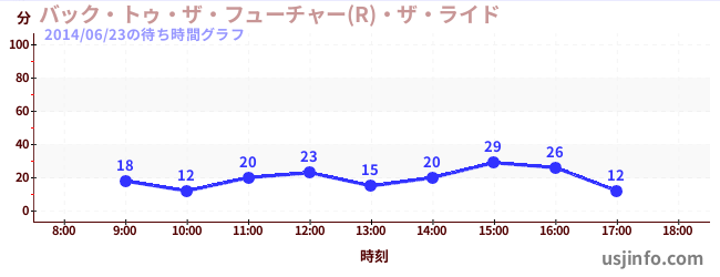 • バック・トゥ・ザ・フューチャー(R)・ザ・ライド$B$N(B2014年06月23日の待ち時間