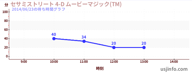 • セサミストリート 4-D ムービーマジック(TM)$B$N(B2014年06月23日の待ち時間