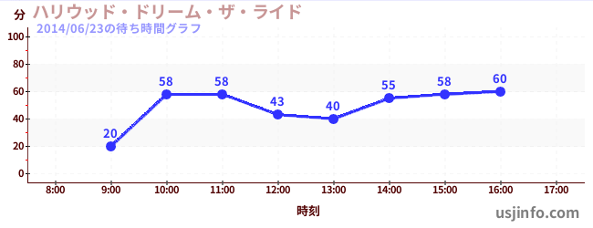 • ハリウッド・ドリーム・ザ・ライド$B$N(B2014年06月23日の待ち時間