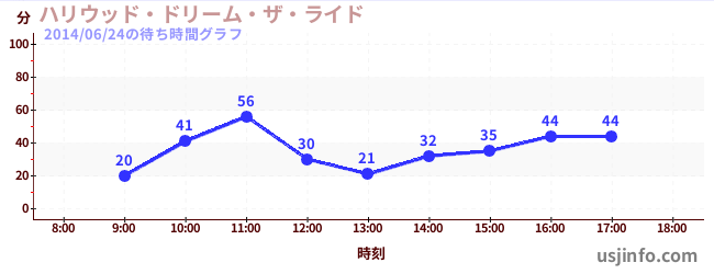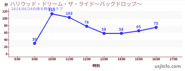 • ハリウッド・ドリーム・ザ・ライド〜バックドロップ〜$B$N(B2014年06月24日の待ち時間