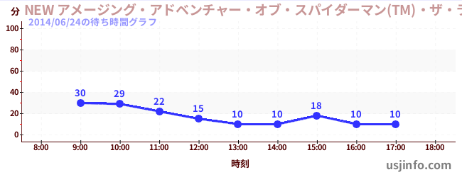 • NEW アメージング・アドベンチャー・オブ・スパイダーマン(TM)・ザ・ライド 4K3D$B$N(B2014年06月24日の待ち時間