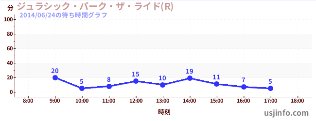 • ジュラシック・パーク・ザ・ライド(R)$B$N(B2014年06月24日の待ち時間